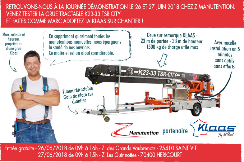 Démonstration de grues Klaas chez Z MANUTENTION à Saint Vit et Héricourt les 26 et 27 juin 2018
