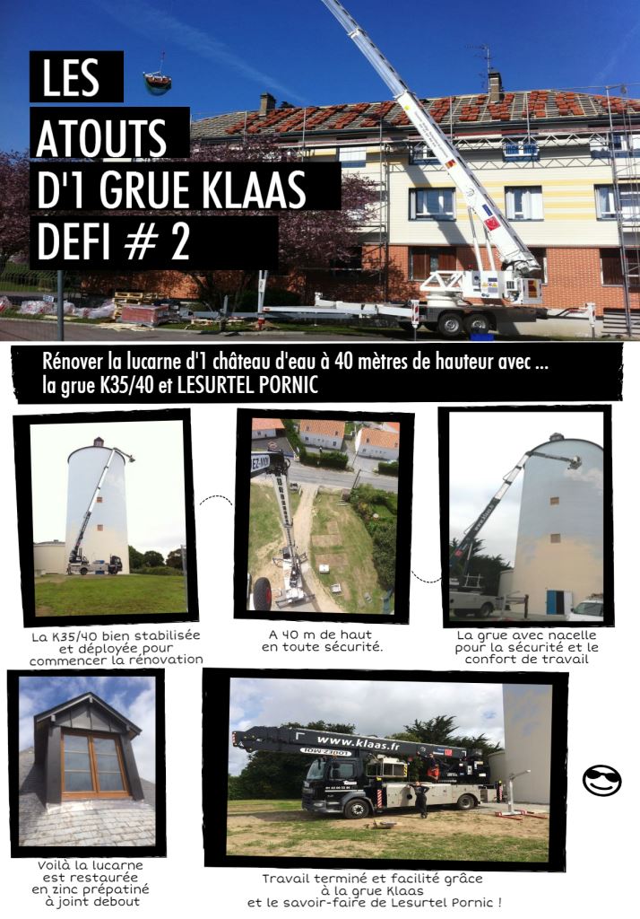 Pour voir les réalisations avec la grue nacelle Klaas de la société Lesurtel-Pornic, cliquez sur ce lien.