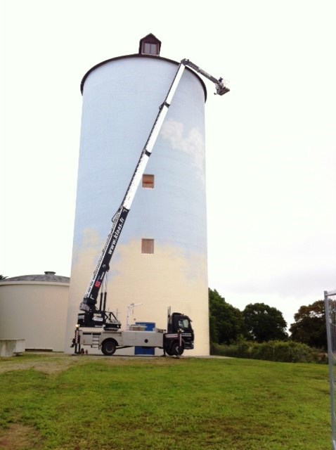 Rénovation d’une lucarne de château d’eau avec un camion grue Klaas et Lesurtel Pornic