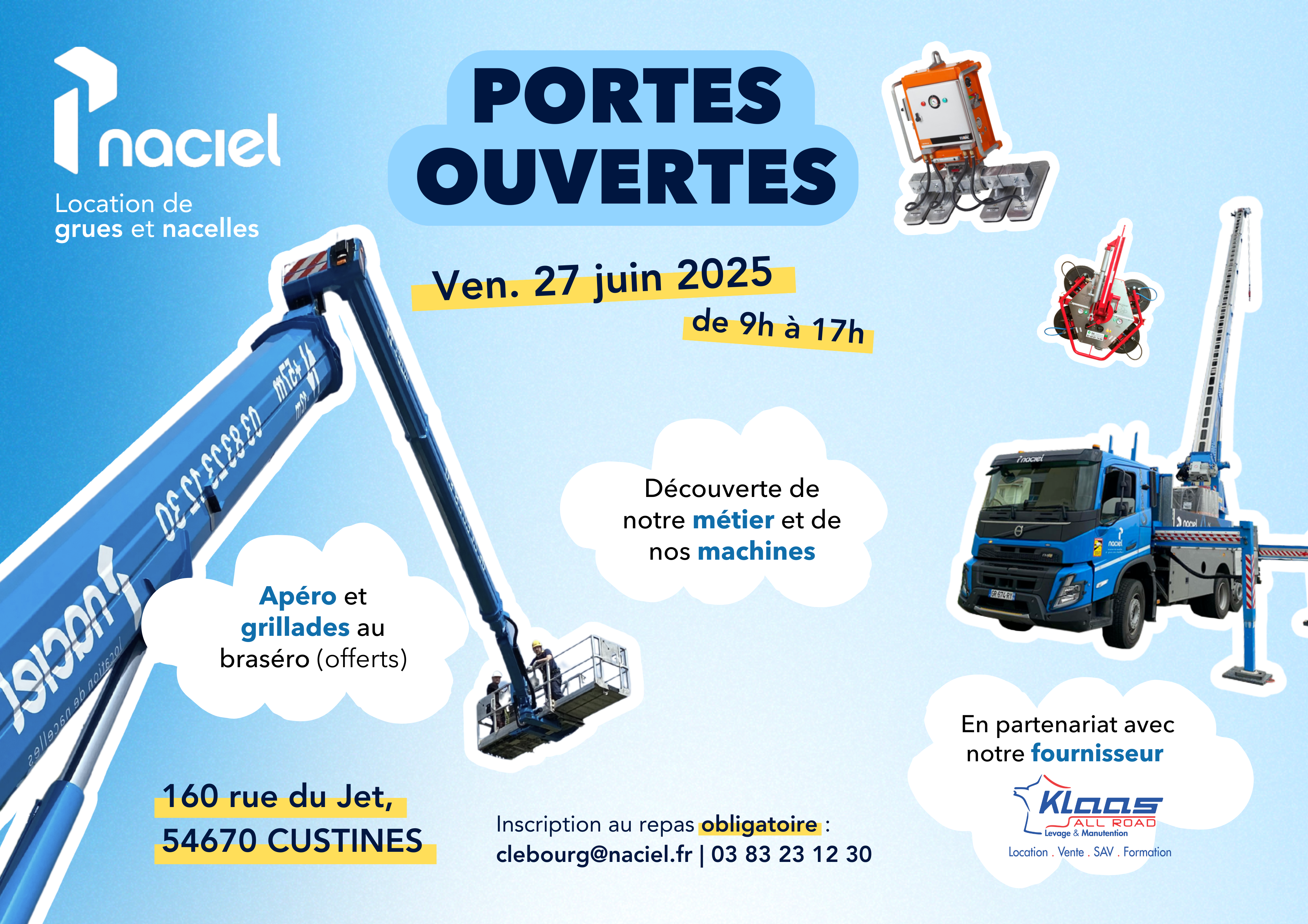 Profitez de ce moment convivial pour découvrir les prestations proposées par Naciel et tester la gamme de matériels de levage et manutention Klaas.