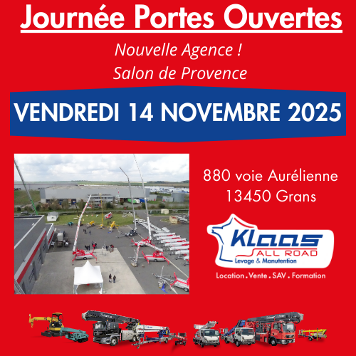 Vendredi 14 novembre 2025, KLAAS ALL ROAD vous ouvre les portes de sa nouvelle agence à Salon-de-Provence pour une journée exceptionnelle !