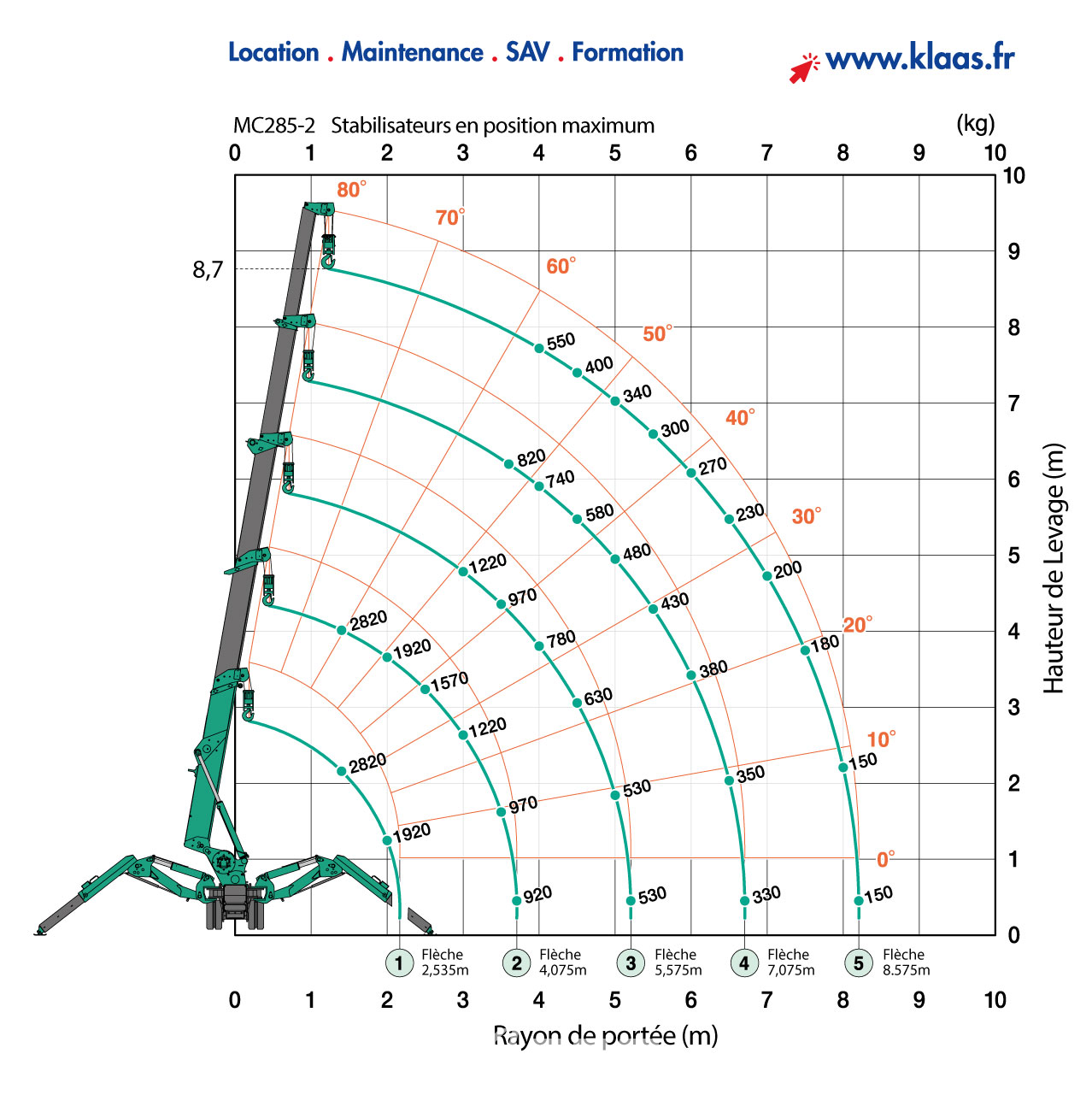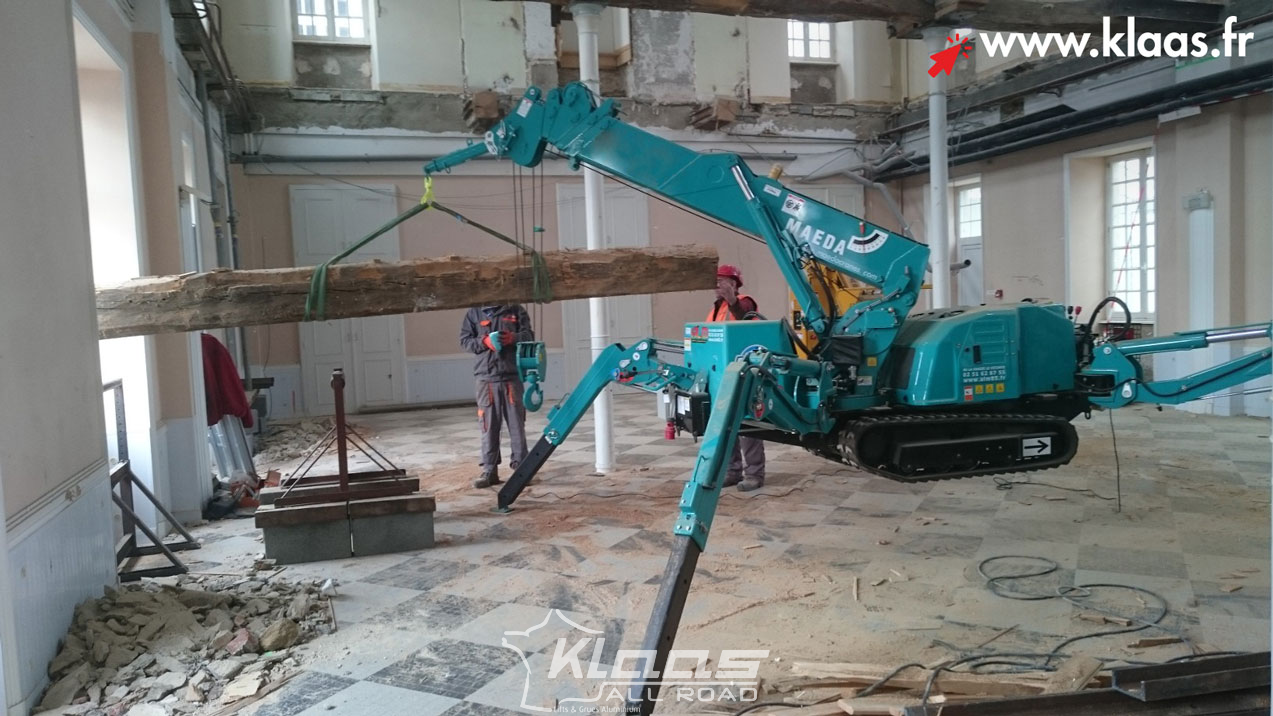 Location mini grue électrique Maeda MC 285 avec Klaas by All Road et le service de livraison sur chantier partout en France.