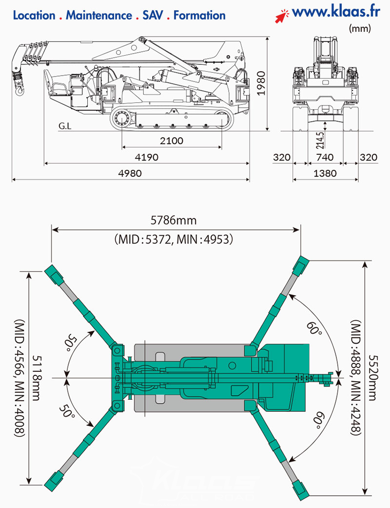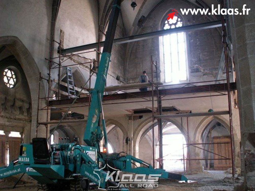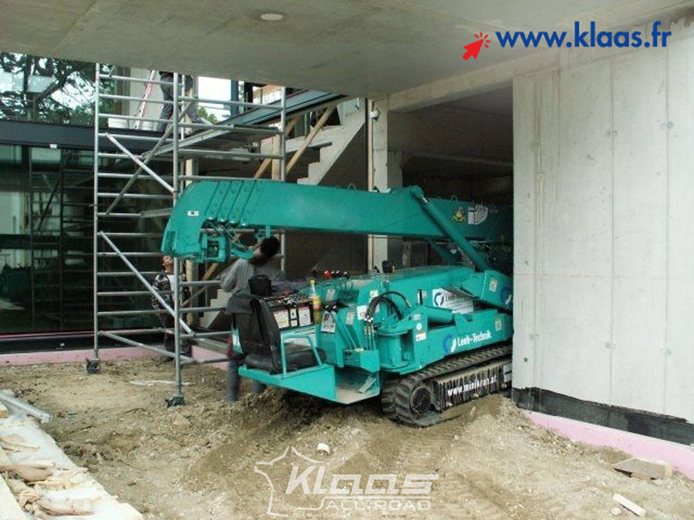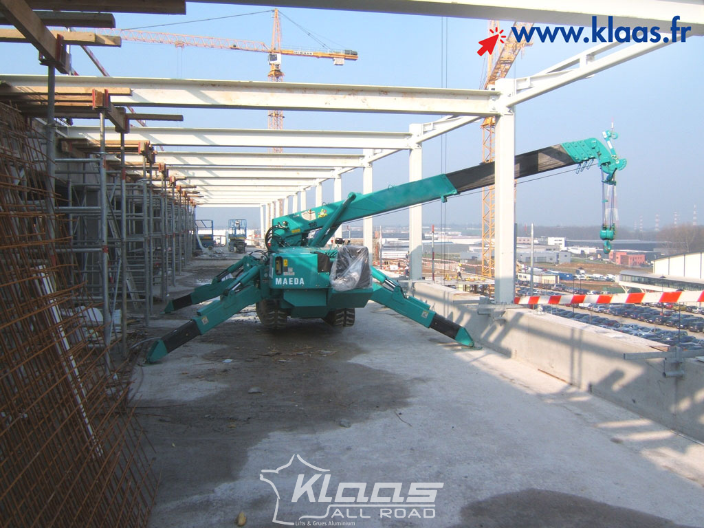 Location mini grue électrique Maeda MC405 partout en France avec les service de livraison sur chantier disponible dans tout le réseau Klaas by All Road.