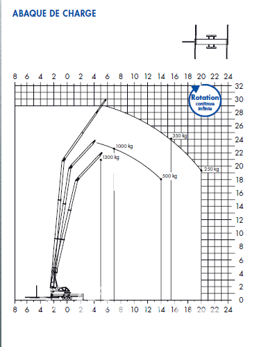 Elle est équipée d'une flêche télescopique qui permet d'atteindre des hauteurs importantes, offrant ainsi une grande portée verticale et horizontale.