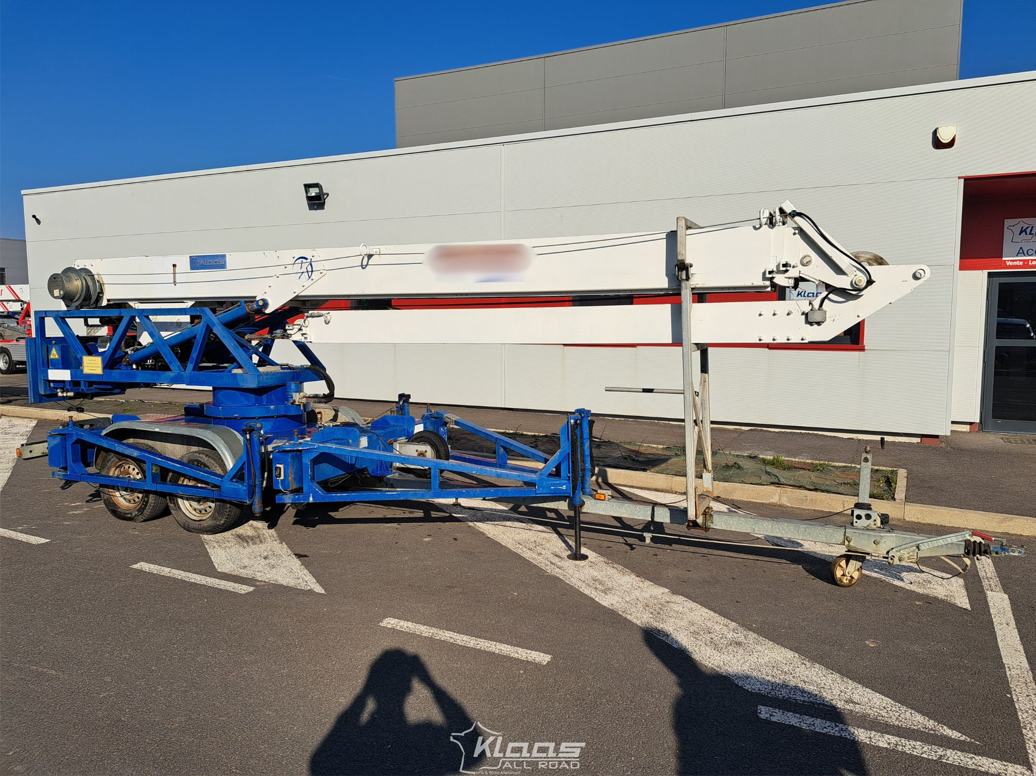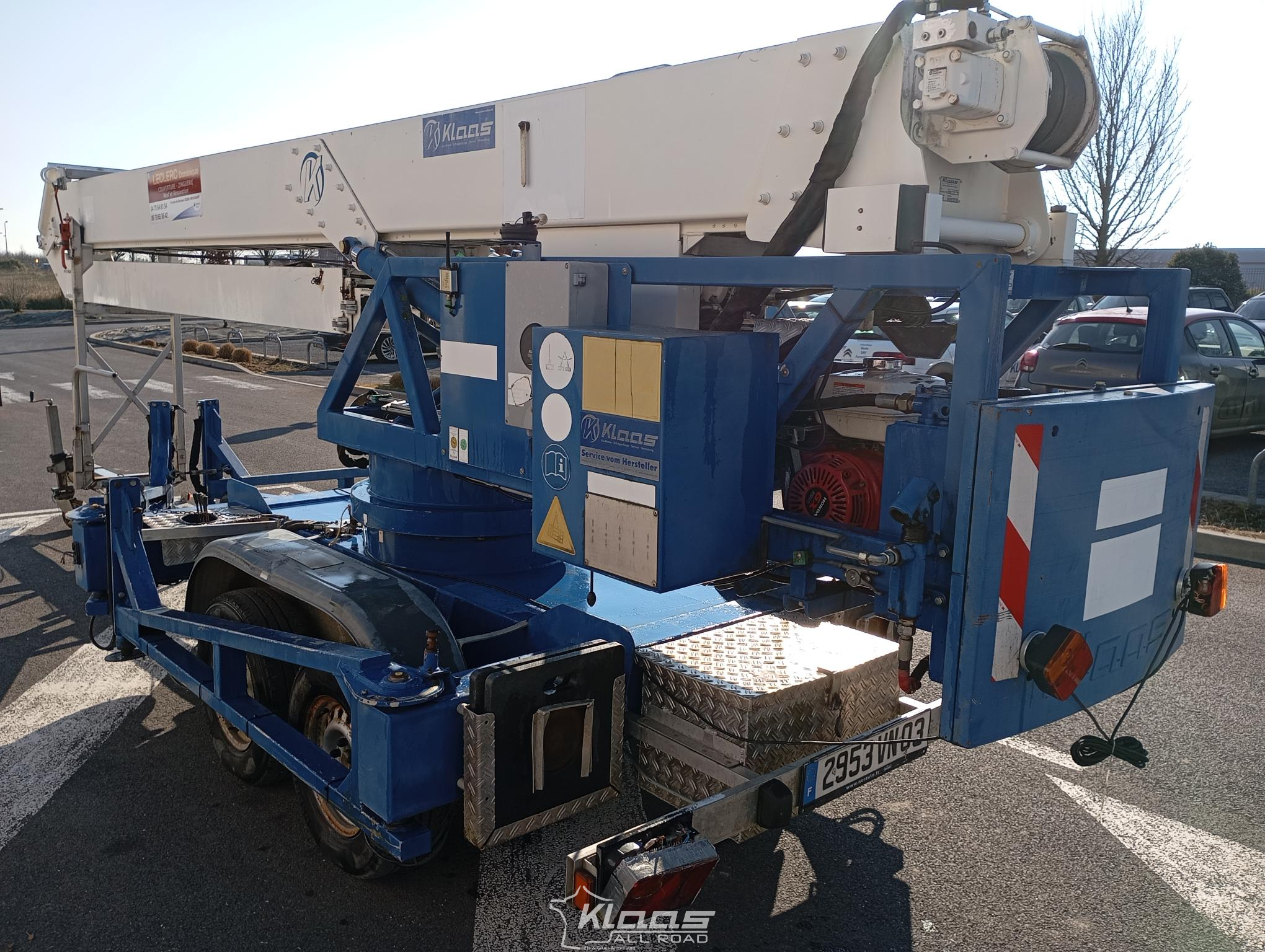 grue mobile d’occasion, grue sur remorque KLAAS, grue K17-24, grue tractable 24 m, grue légère chantier, grue de levage occasion, grue autonome sur remorque, matériel de levage d’occasion, grue aluminium Klaas, grue chantier bon état, grue 500 kg, grue flèche 24 mètres, grue remorque 2008, grue Klaas occasion, grue pour couverture, grue pour menuiserie, grue compacte mobile