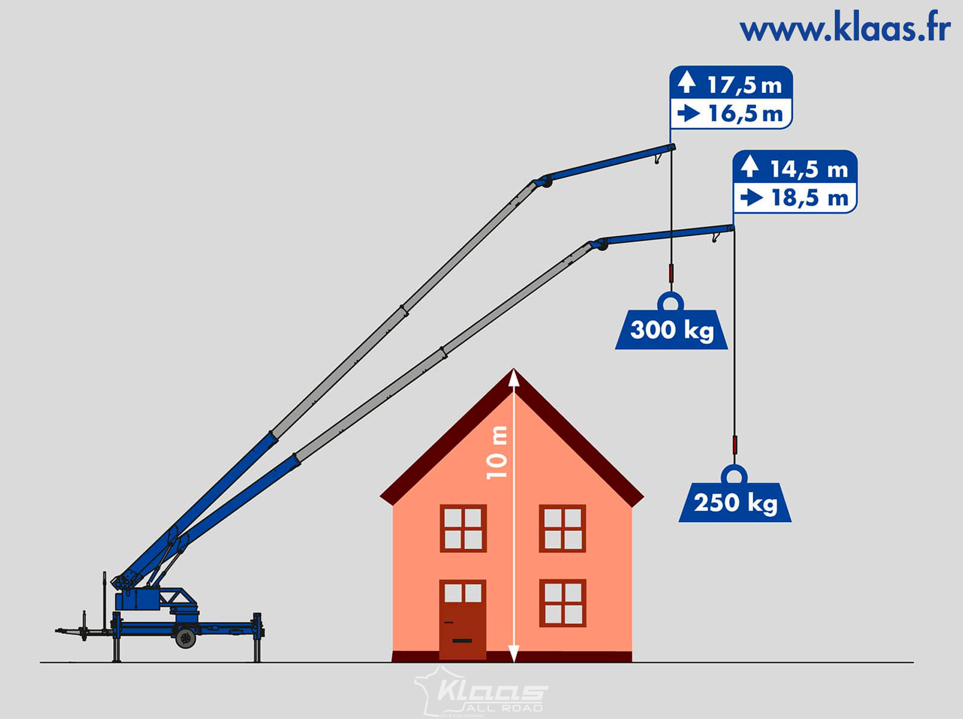 Grâce au déplacement autonome et à son faible encombrement, la grue légère Klaas est la grue idéale pour les chantiers étroits difficiles d'accès.