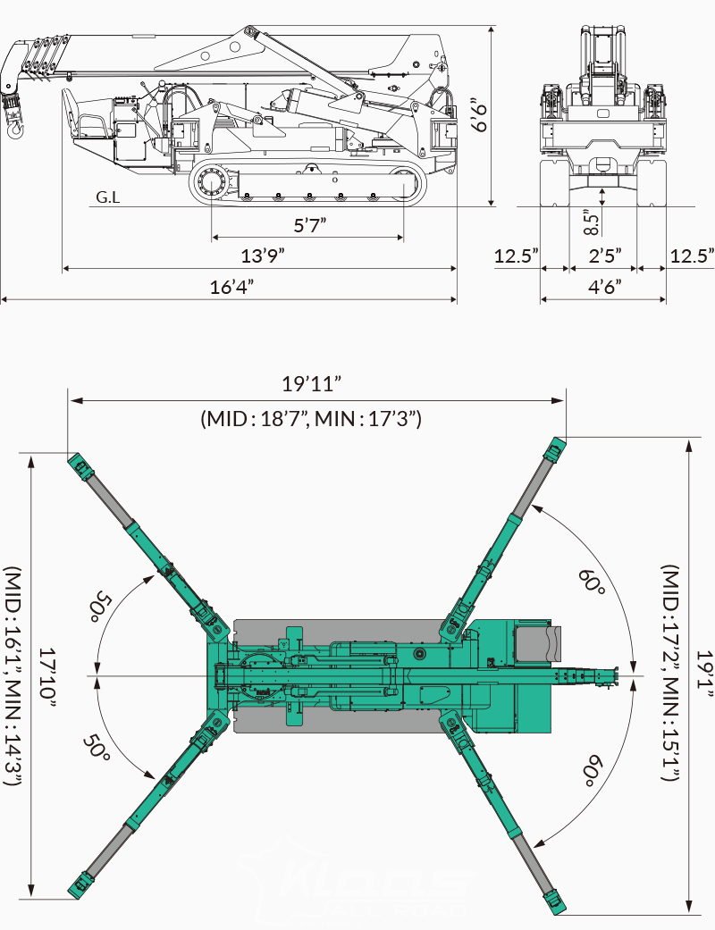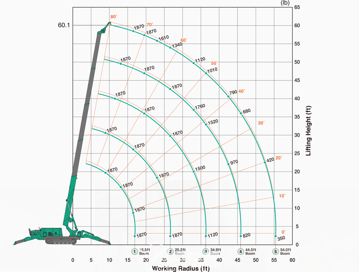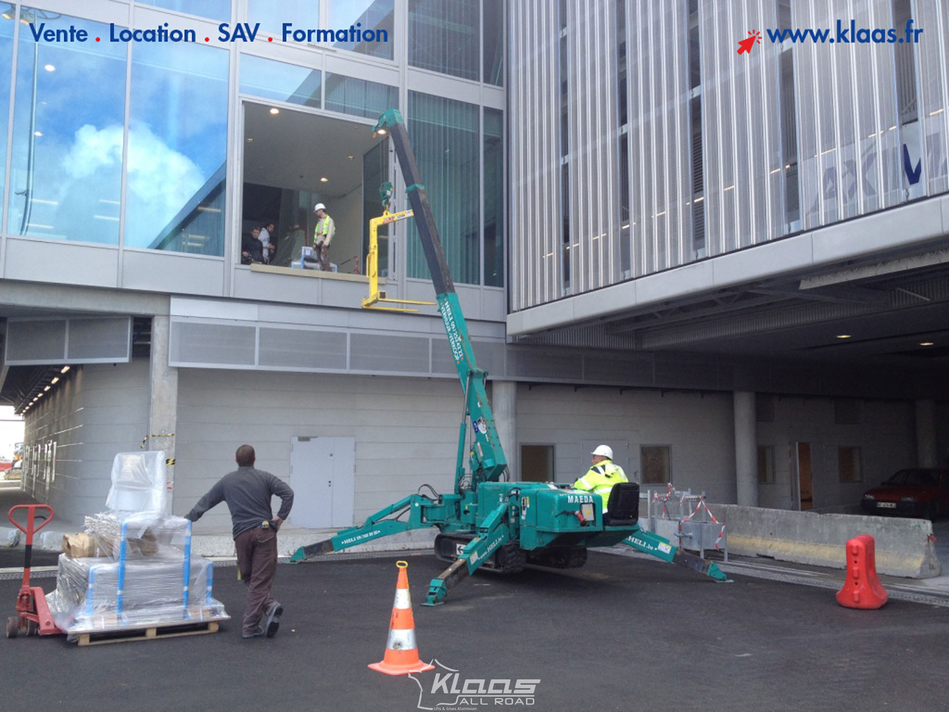 Capable d'effectuer un déplcement en charge, la mini grue araignée MC405 peut également être équipé d'une ralonge de JIB vous permettant d'atteindre une hauteur supérieur de 4 mètres.