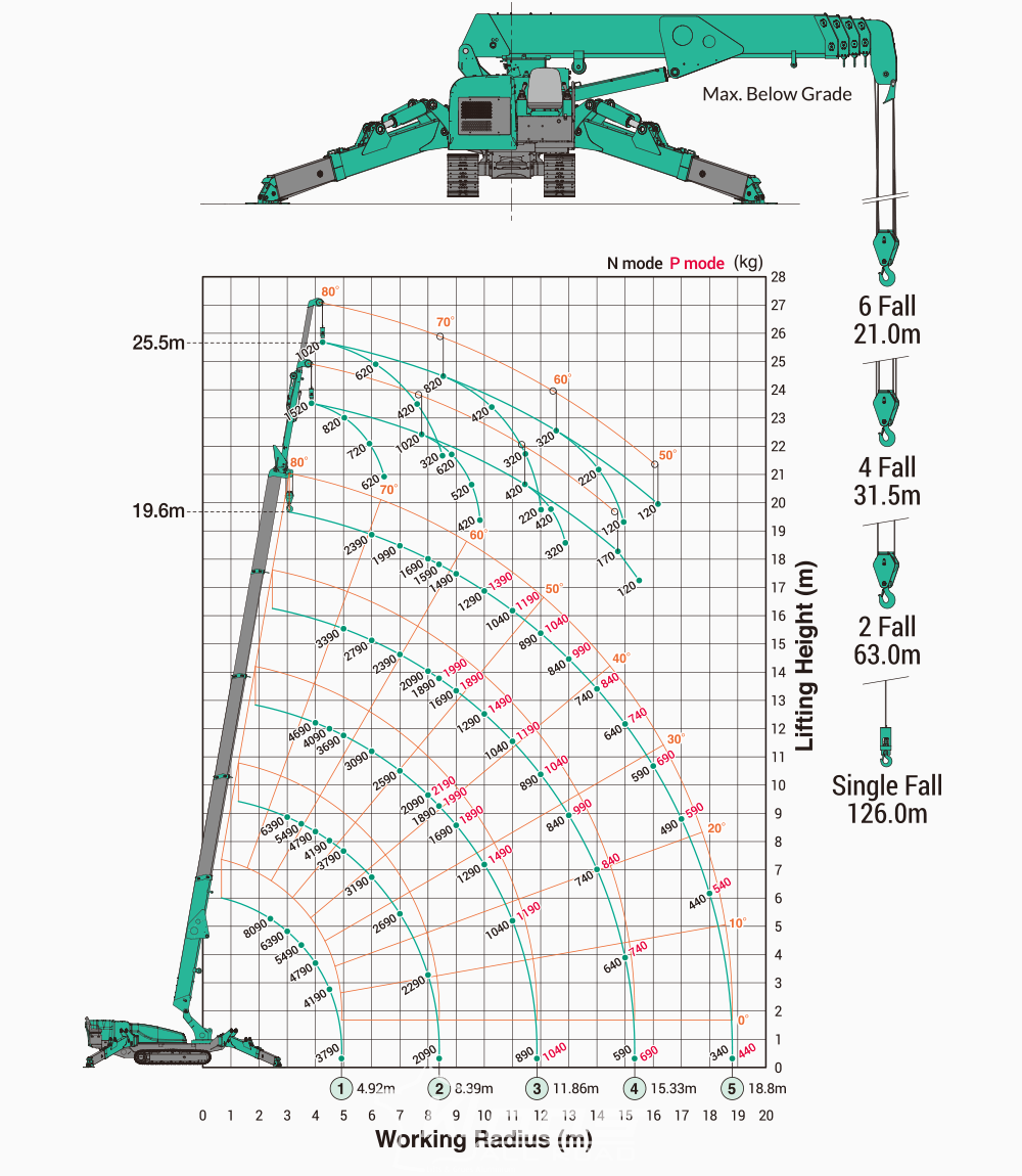 | Hauteur max. sous le sol | - 25,5 m |