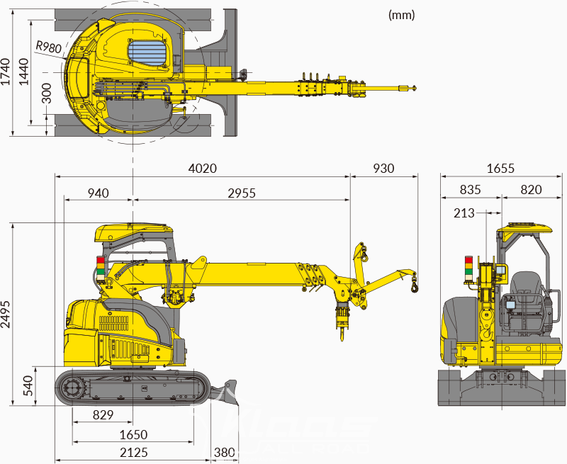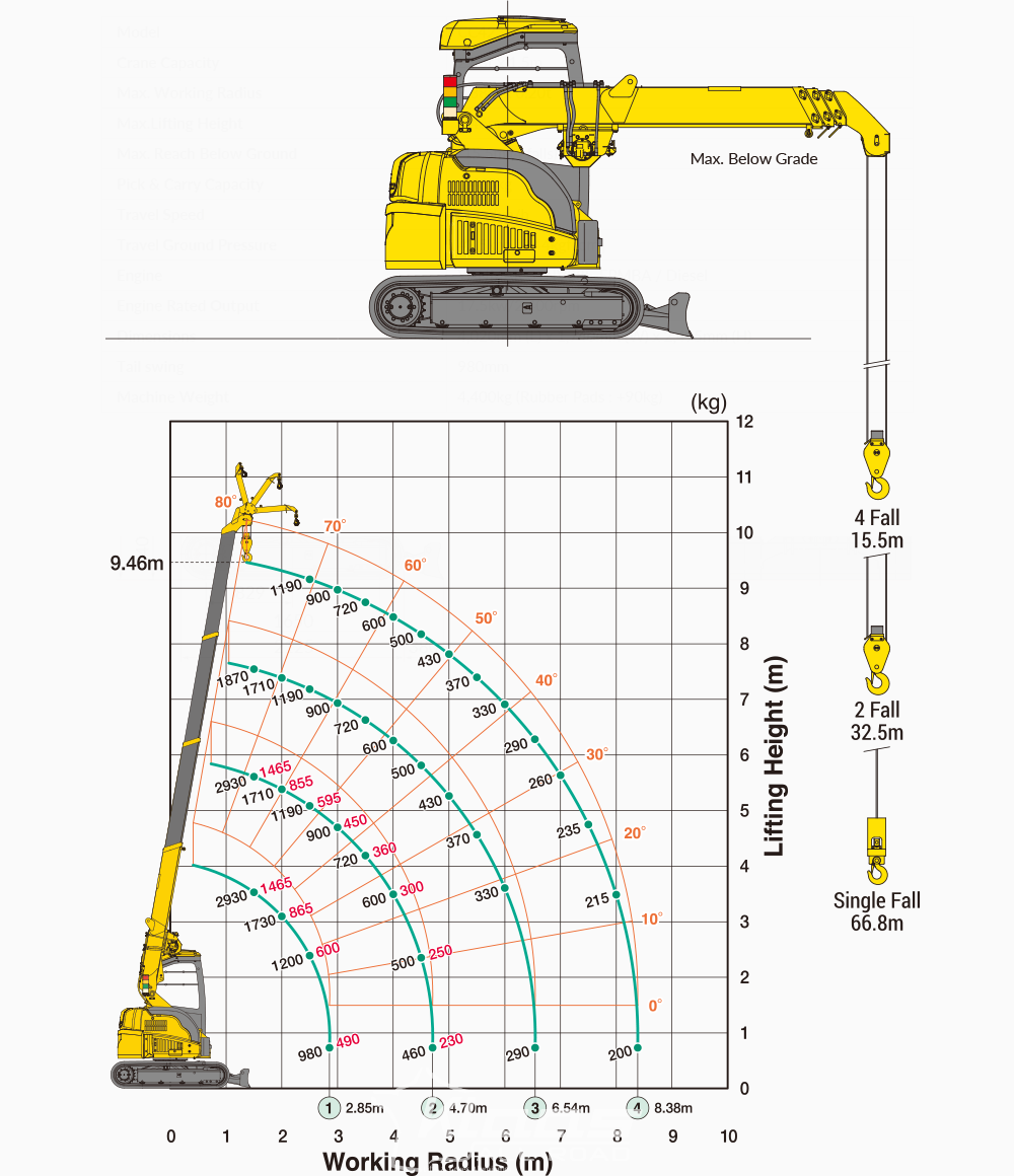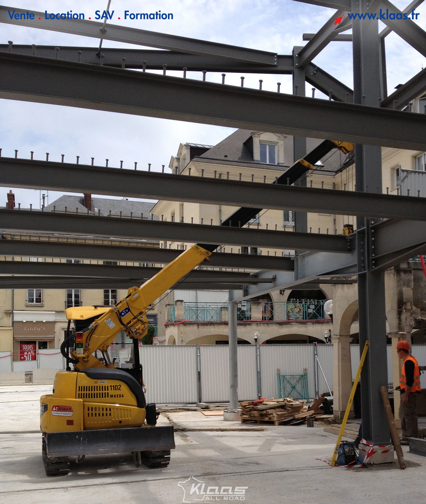 Alliant portée et capacité, cette grue sur chenille à dans un premier temps été conçue pour les espaces restreints avec sa faible largeur de 1,65m.