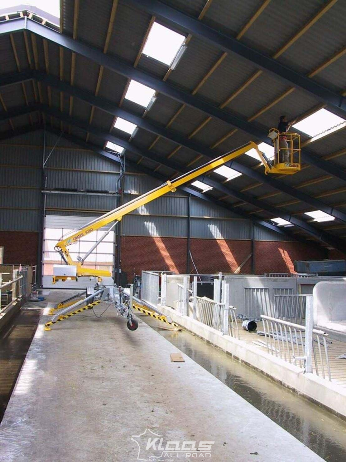 Les caractéristiques de conception comprennent un montage de panier qui forme une flèche "volante" montée sur la section supérieure du JIB et qui permet une plus grande portée au-dessus des bords de toit ou d'autres obstacles.