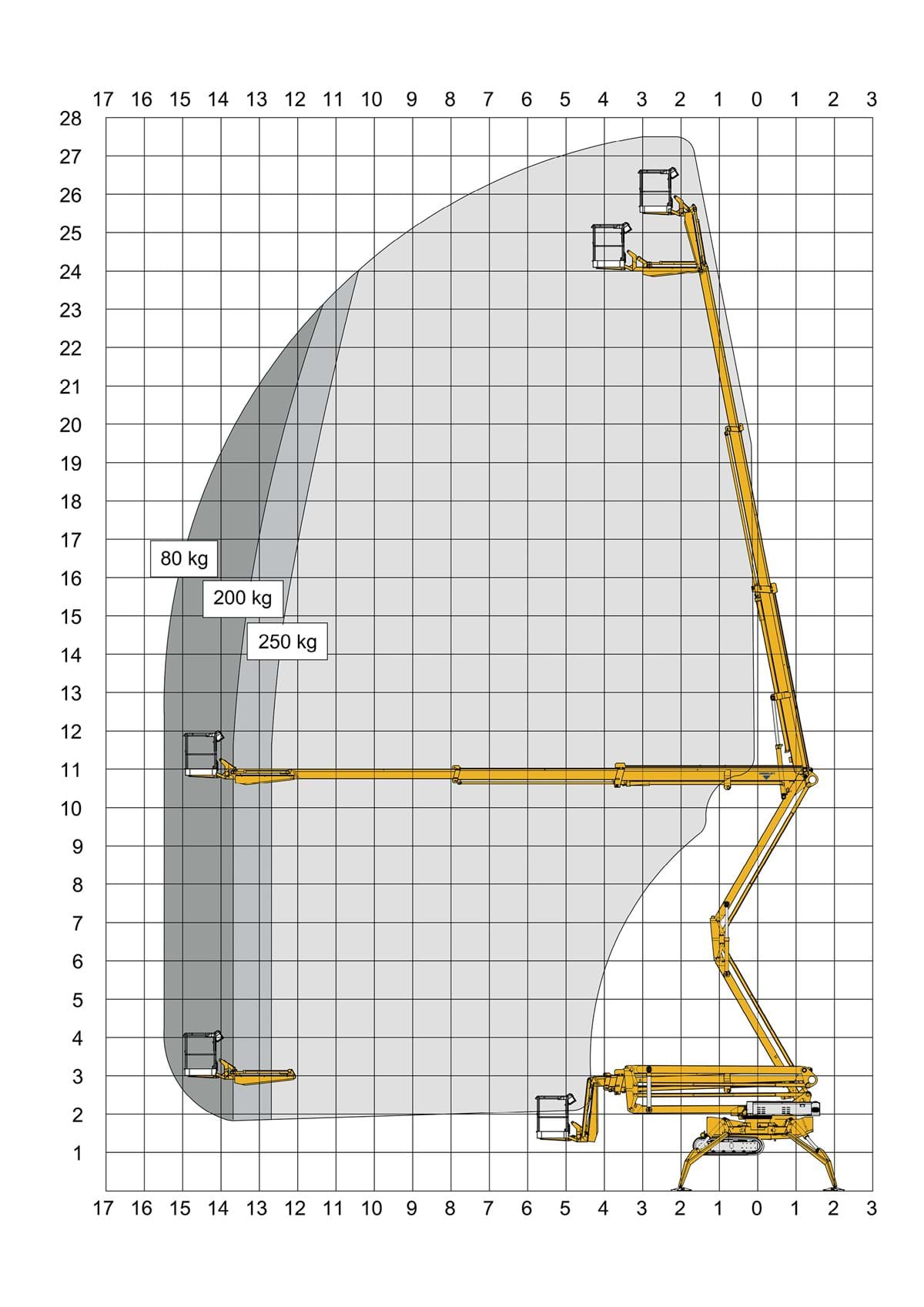 La longue flèche mobile permet un réglage fin. Une hauteur de travail maximale de 27,5 m et une grande polyvalence d'utilisation et de rentabilité.